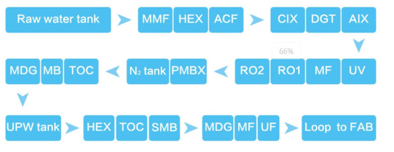 The resistivity of 18.25M Ω· cm is considered the optimal theoretical water quality indicator for ultrapure water. With the development of the microelectronics industry, using only this indicator to measure ultrapure water is far from enough. Particles in ultrapure water TOC、 Dissolved oxygen, silicon dioxide, bacteria, and other PPT grade metal ions have become the main factors affecting the quality and yield of products in the microelectronics industry and other industries.